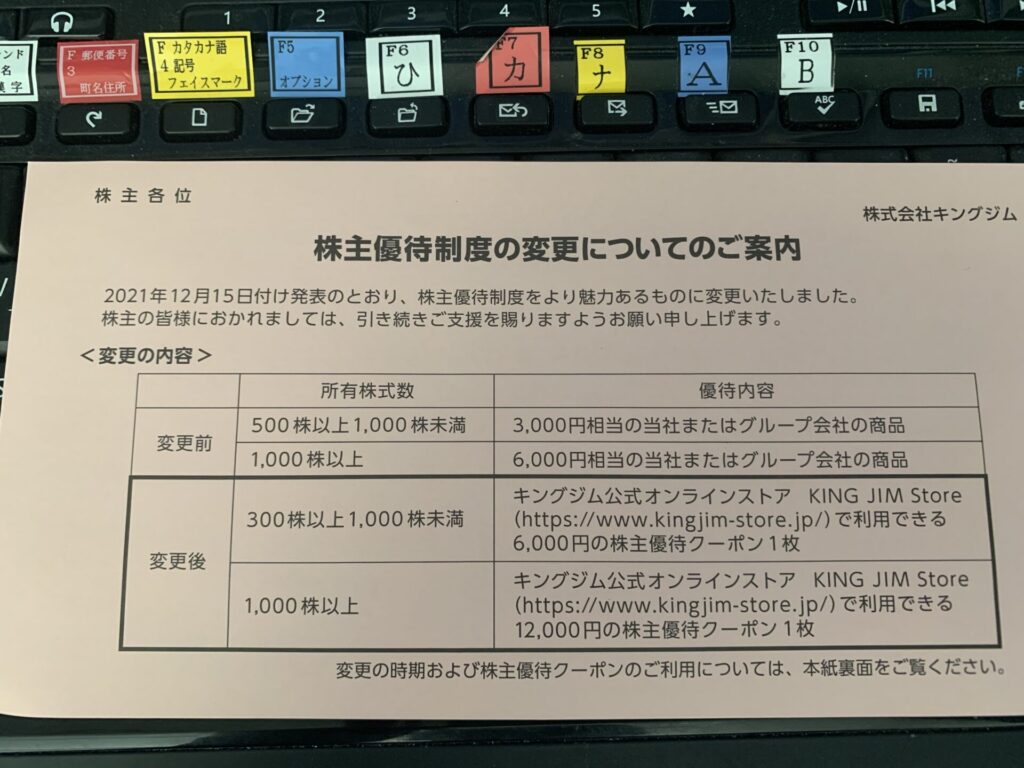 改悪された株主優待「キングジム」