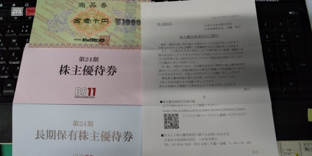 今日届いた株主優待「BS11」