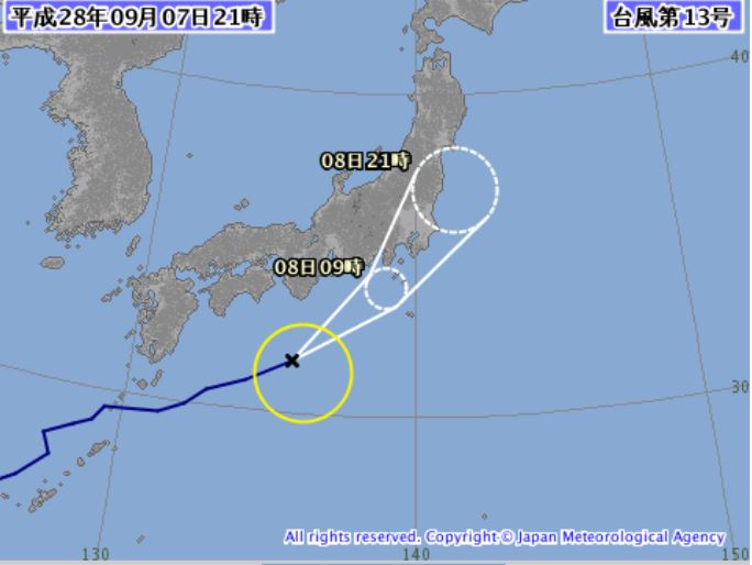 ▼台風第13号 (マーロウ)進路予想 20160908_002044 posted by (C) ミント専門官 -