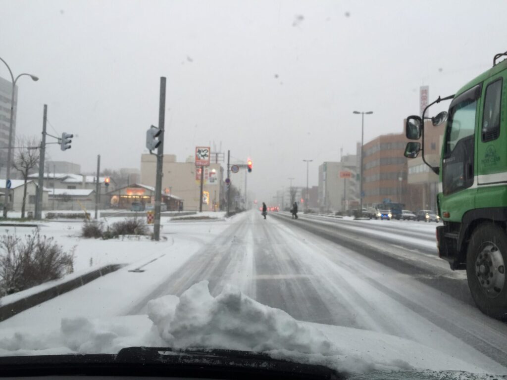 今朝の苫小牧の天気~大荒れ!信号機が見えない~