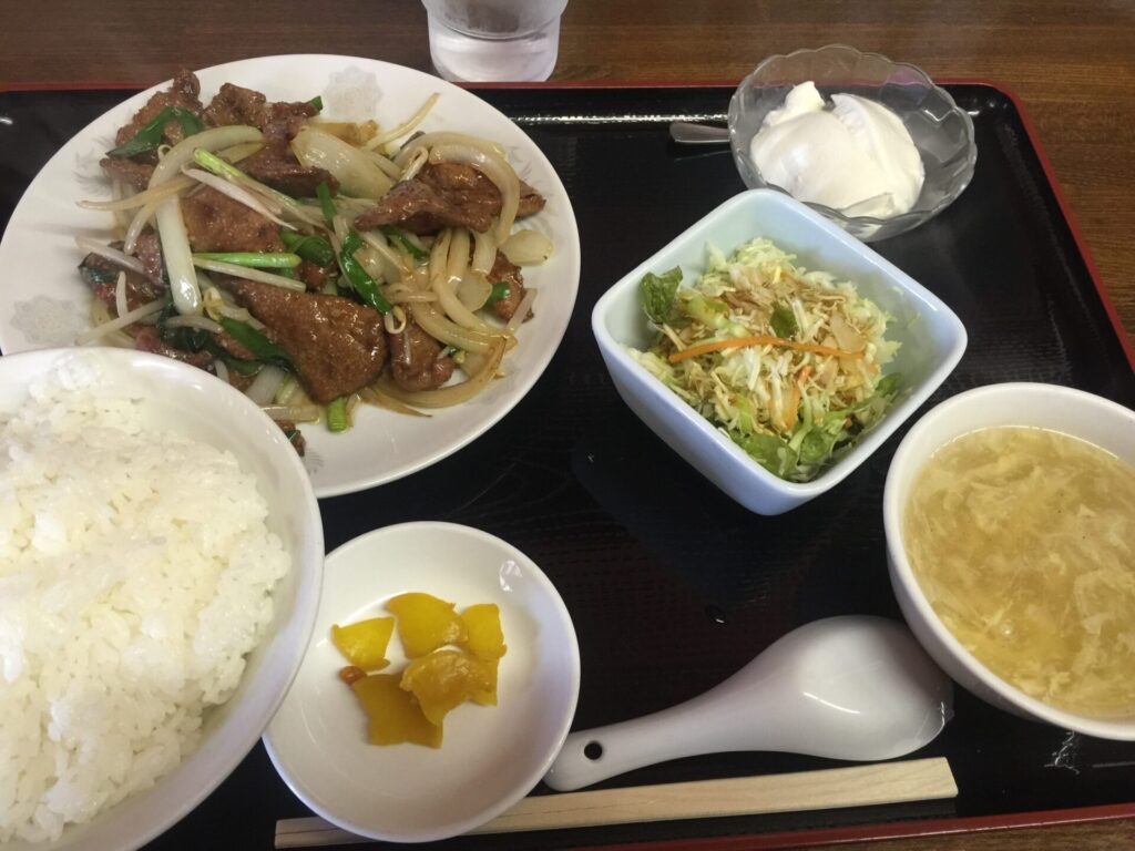 登別市「香龍飯店」レバニラ炒め定食