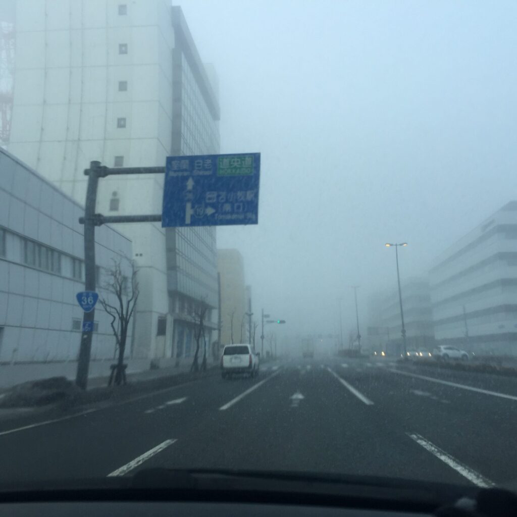 今朝の苫小牧の天気~濃霧!気温は0度~