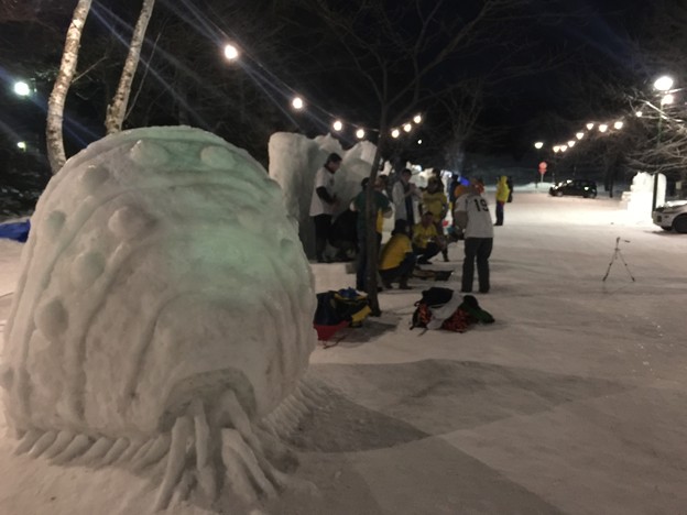 帯広氷祭りの雪像作りを見に行った。