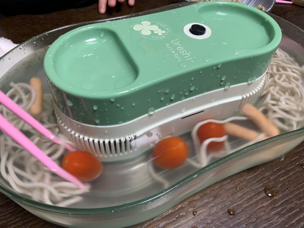 ▼流しそば 20210420_190721 posted by (C) ミント専門官 プチトマトやポークビッツも舞っている。 ▼テレビに映ってる人が同じモンベルの服を着てたと指摘 20210420_194042 posted by (C) ミント専門官 -