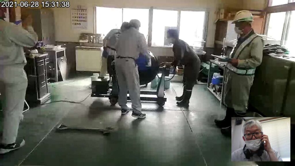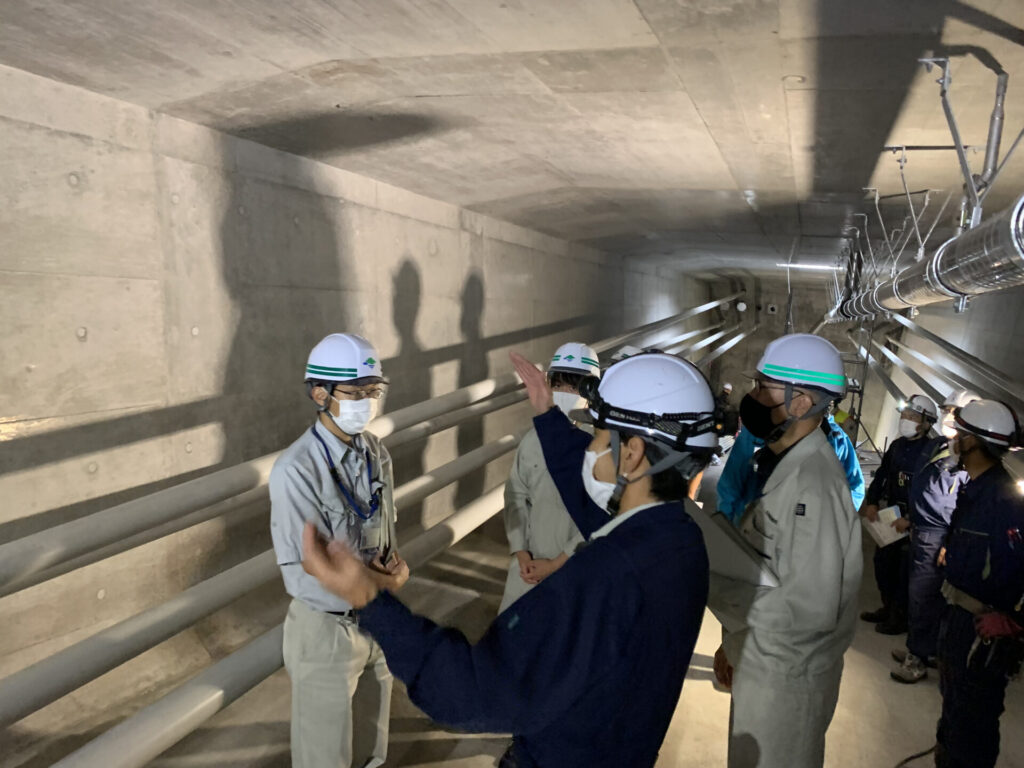 保護中: 今日はインターンの学生たちを現場に案内した。