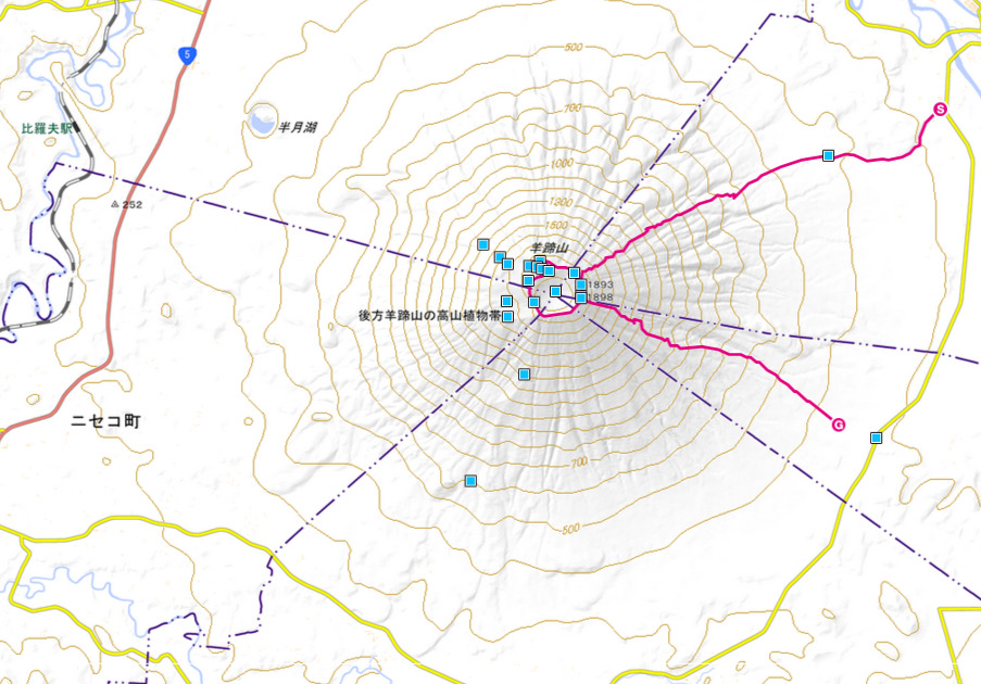 ヤマレコの全ルート表示(今まで歩いた軌跡の表示)は、データアップした翌日以降ではないと反映されない。なので、今日あたり羊蹄山の2本脚が4本脚になっているはず。 ▼いままでの2本脚:京極コースと喜茂別コースhttp://www.yamareco.com/modules/yama... -