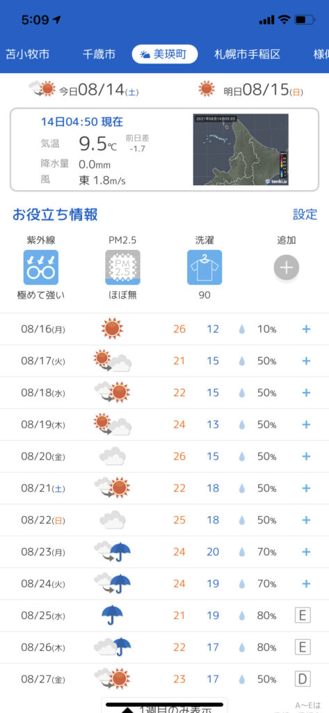 ▼大雪を縦走したいがため週末の天気が気になる。 20210814_050915 posted by (C) ミント専門官 -