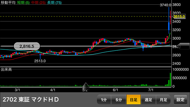 今日の株取引[2702.q_日本マクドナルドホールディングス]