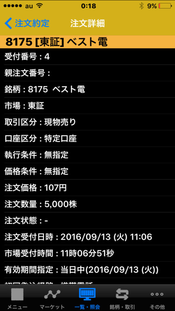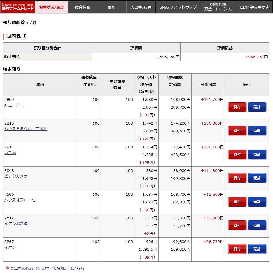 今日の株取引[7512.t_イオン北海道]ほか多数!ソニー証券デビュー