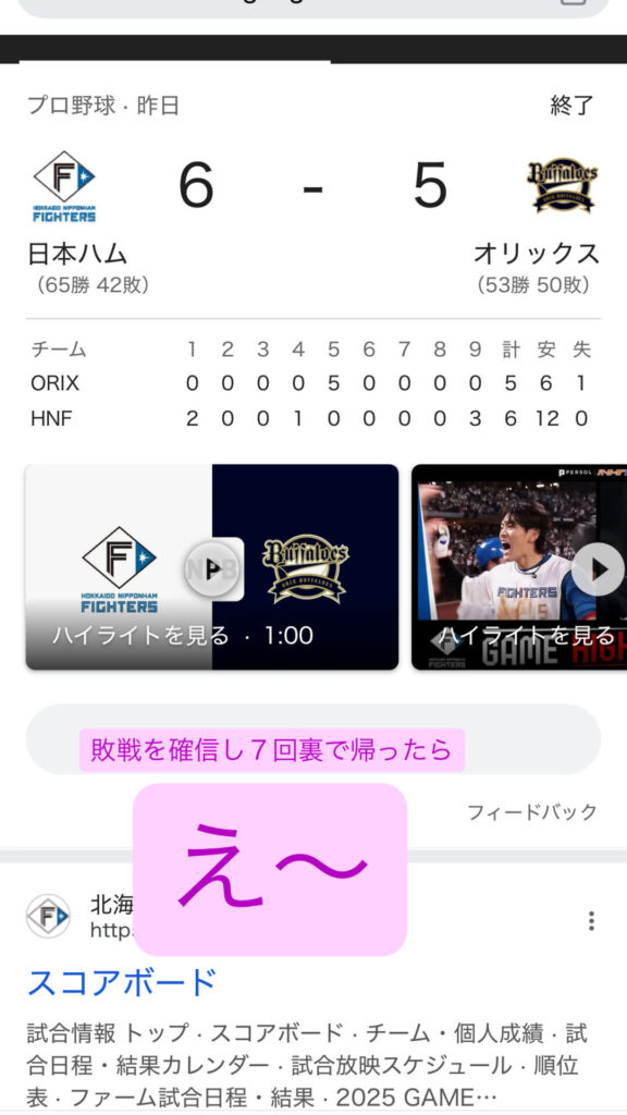 昨日、七回裏で帰ったら…