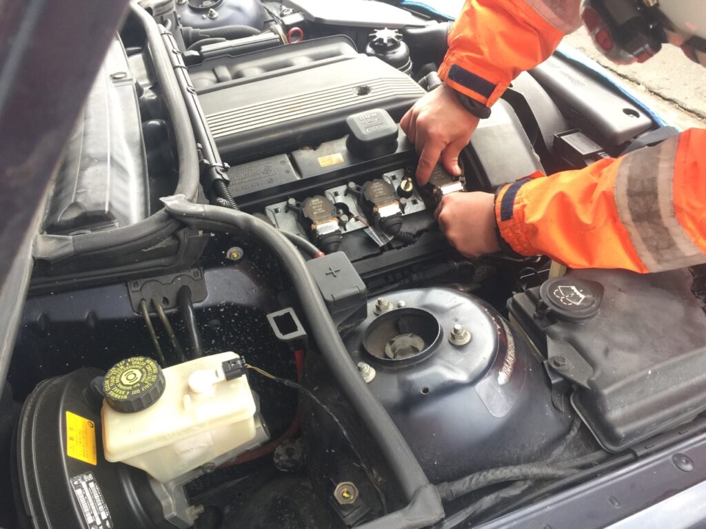 ▼またもや、JAFのお世話になる。6気筒のうち5気筒のプラグを焼いた。 20190225_085427 posted by (C)ミント専門官 BMWはかぶりやすい。