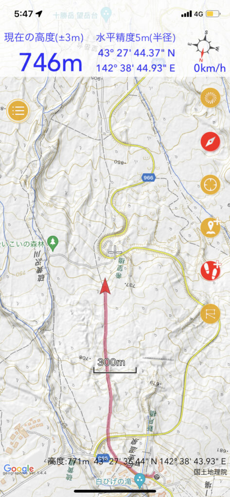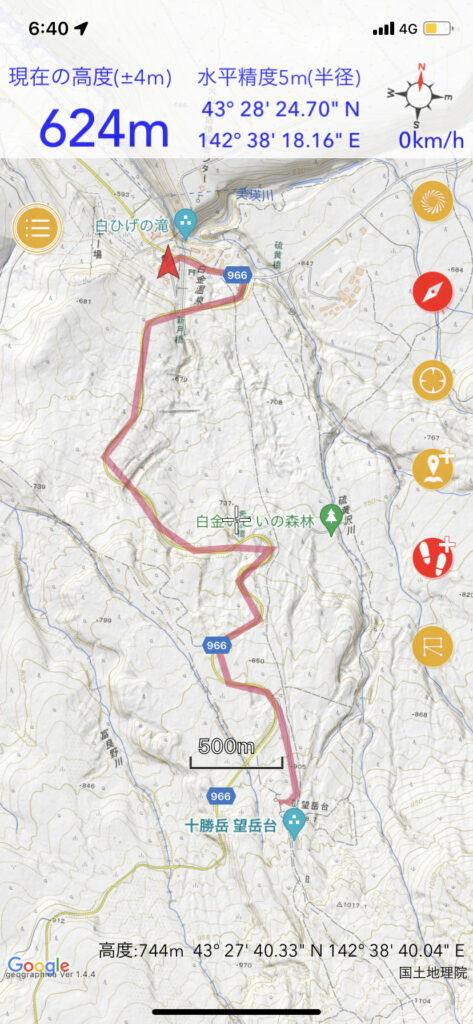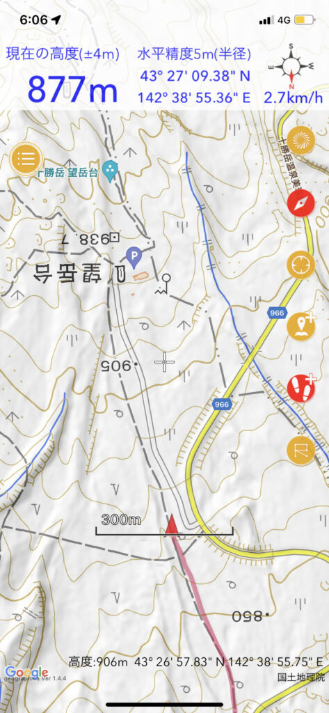 ▼交差している道路は「十勝岳スカイライン」正式路線名 「一般道道966号十勝岳温泉美瑛線」
