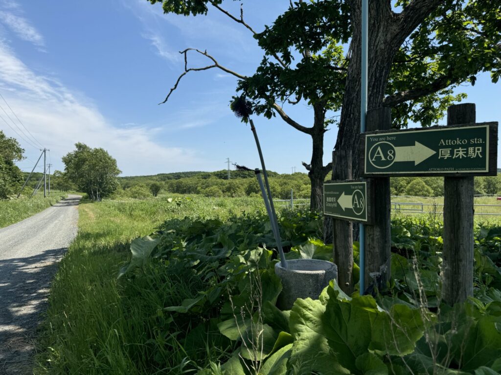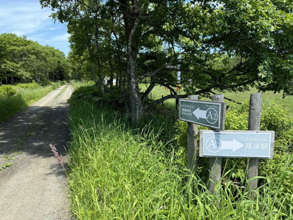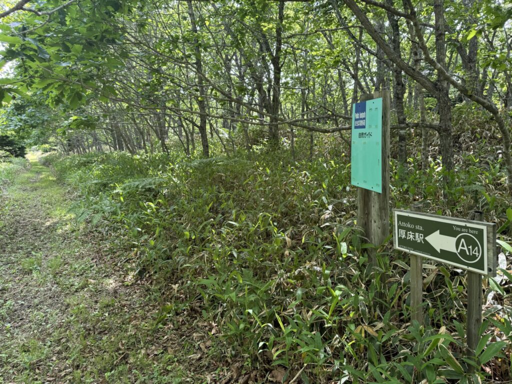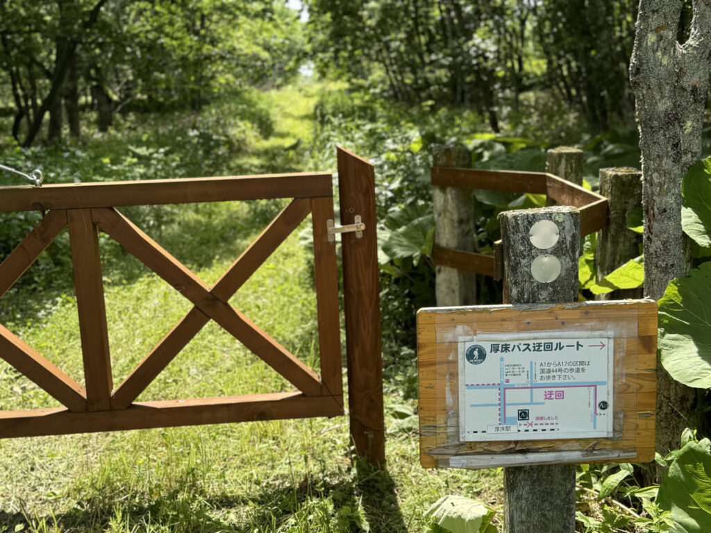 ▼旧鉄道跡地のルートは、ここから厚床駅まで通行不可