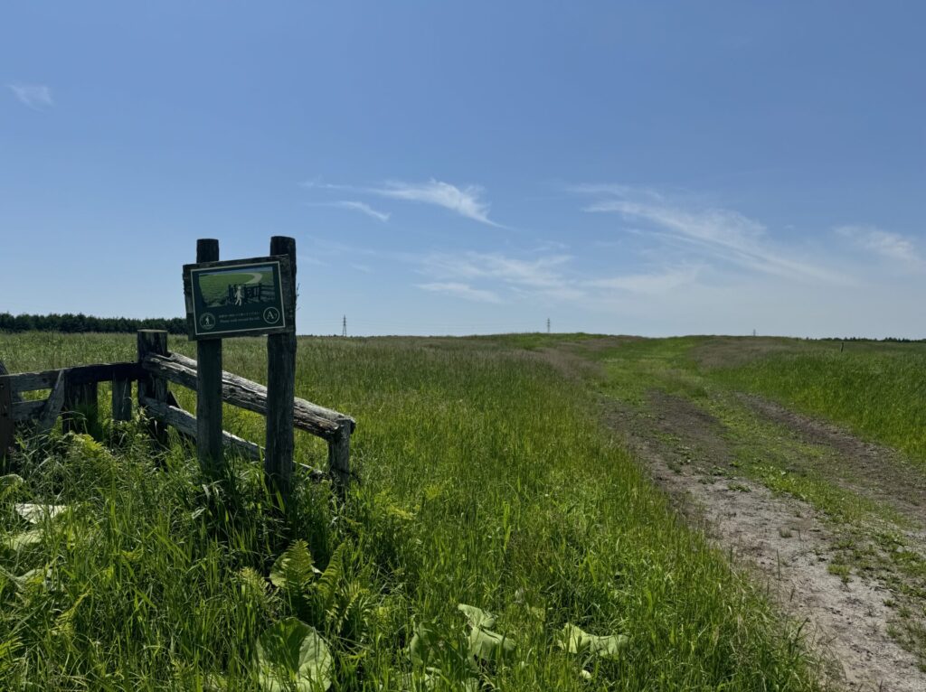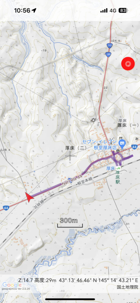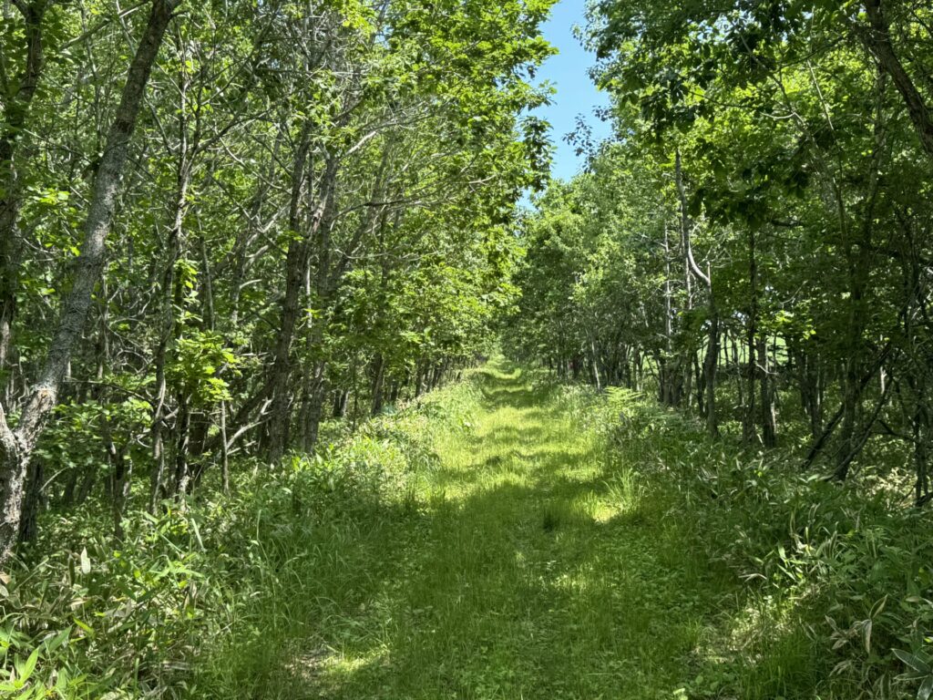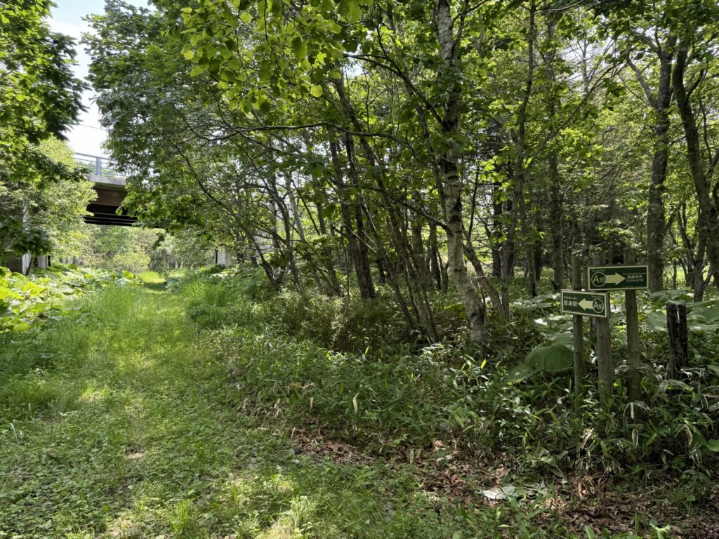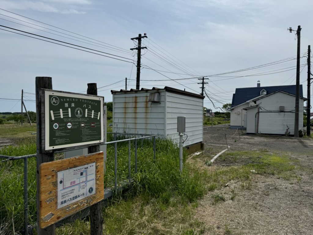 ▼旧鉄道跡地のルートは、ここから厚床駅まで通行不可
