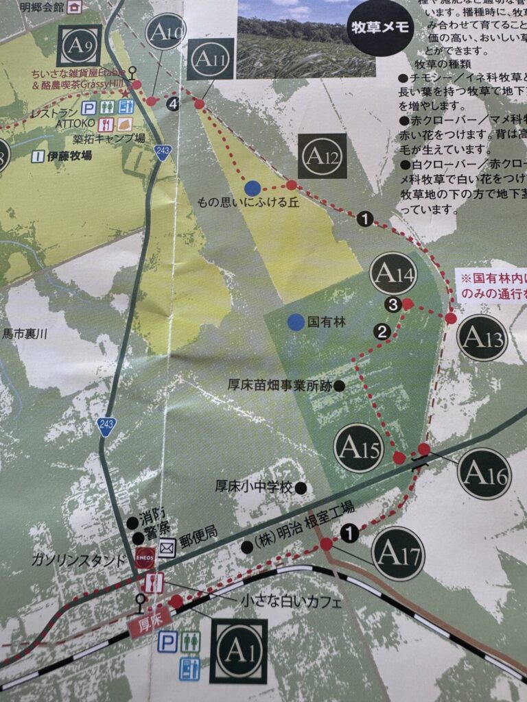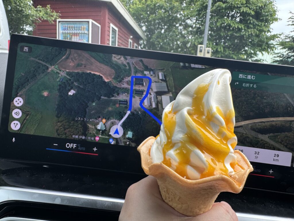 ▼車で再度、伊藤牧場へ ソフトクリームを食べて、落石岬フットパスへ移動する。
