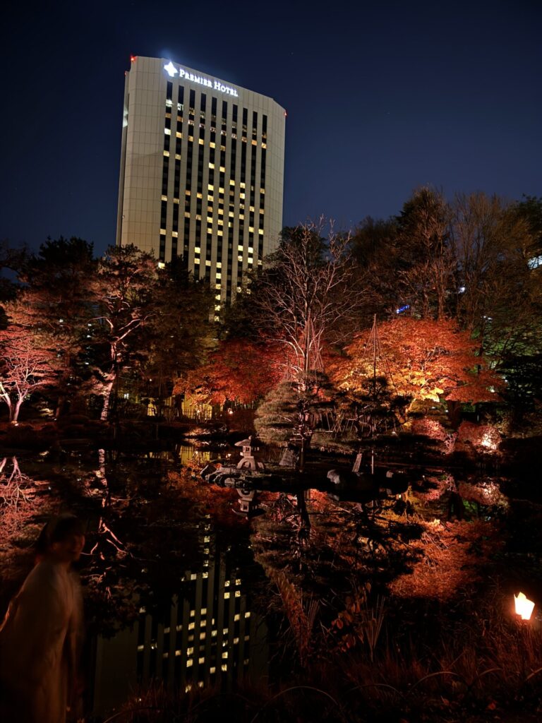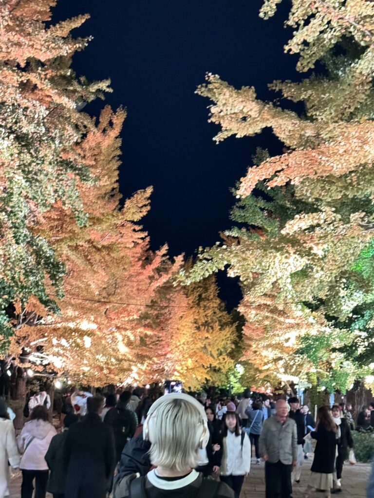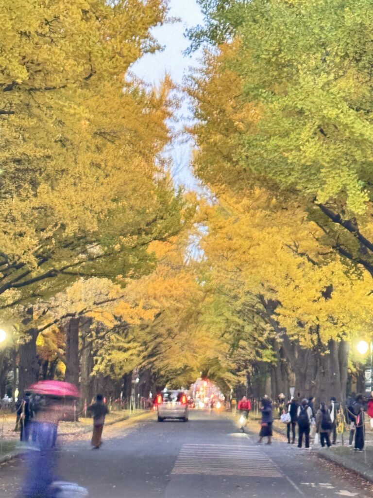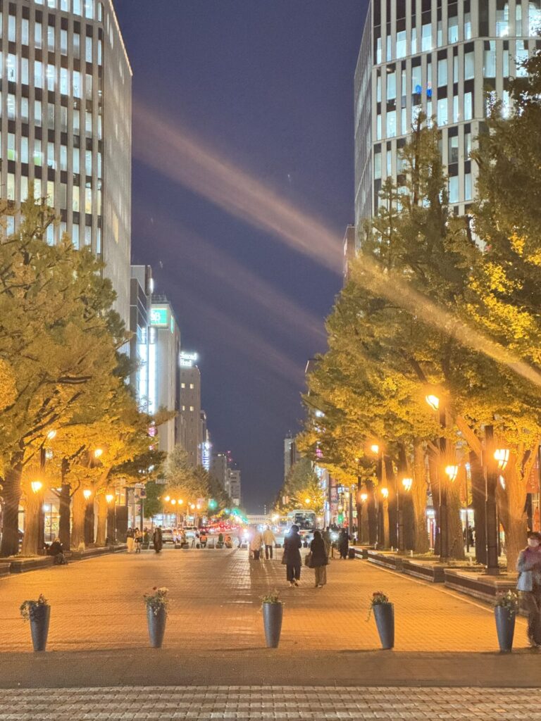札幌駅で降りて、北大のイチョウ並木を見に行った。そこから中島公園のライトアップへ歩く。