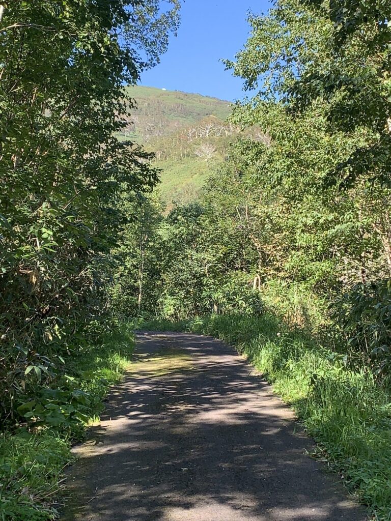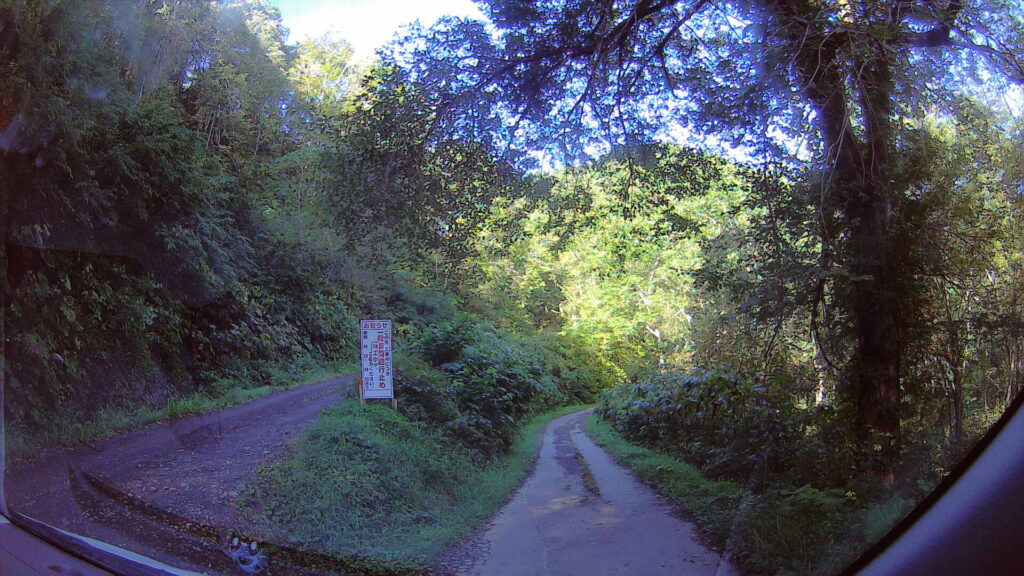 ▼舗装をずっと行くと、道を間違えてしまうので注意! ここは、左が正解!
