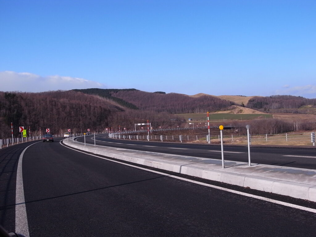 ▼開通から一日遅れながら旭紋道「丸瀬布~旧白滝」を走る。一度、天幕で一般国道に降りるも一気に比布へ