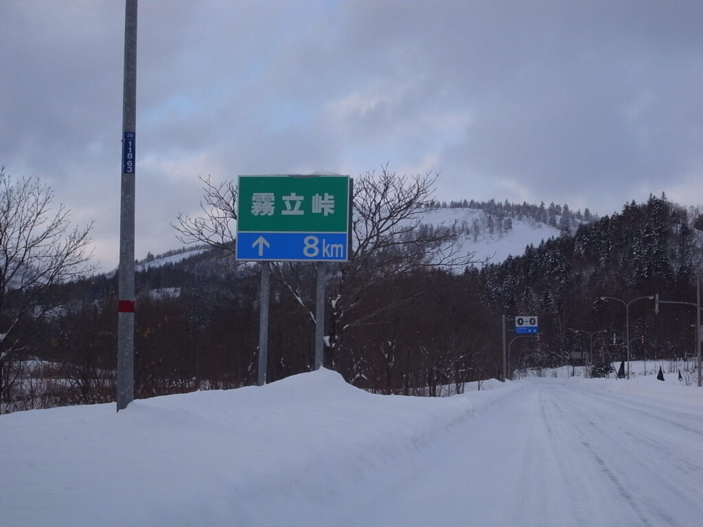 ▼士別から239号で「霧立峠」へ 緑色の標識は「霧立峠IC」のごとく感じ紛らわしい![]()