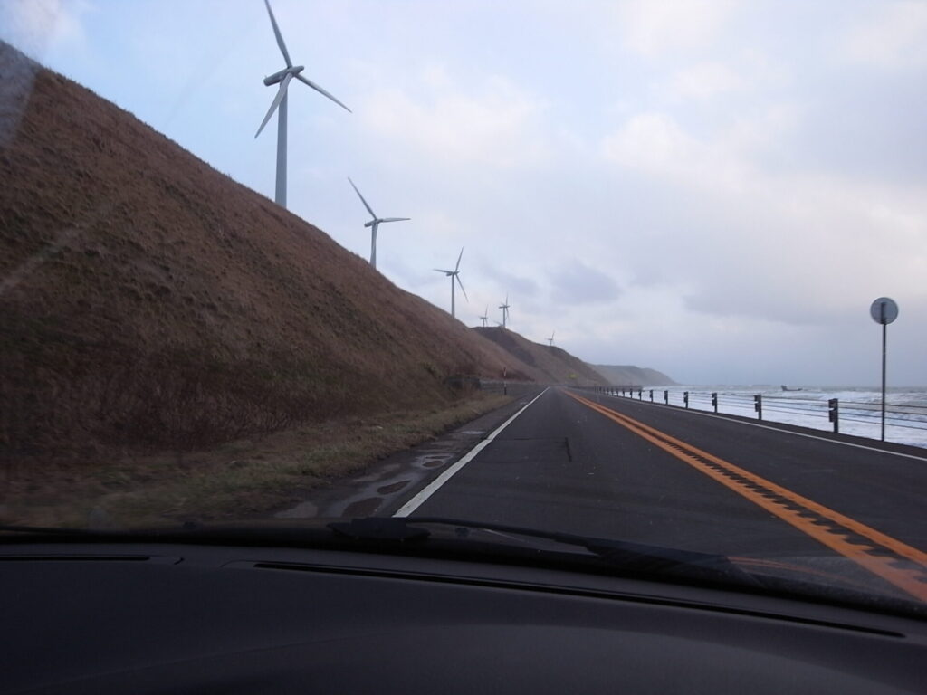 ▼苫前町力昼(りきびる)の一般国道232号。右手はもちろん日本海![]()