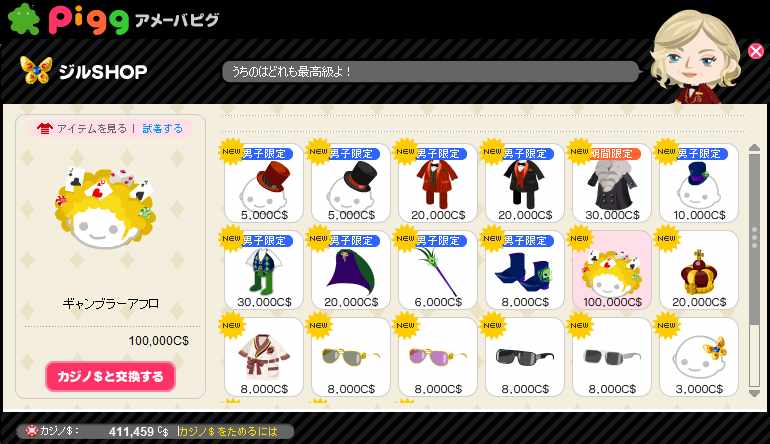 ▼「ギャンブラーアフロ」@100,000C$ 意外に高価