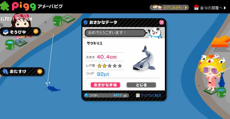 石狩川で"ぬし"が釣れた。 2011 1/02 SNSandHOMEPAGE アメピグ 2011年1月2日2025年10月26日 ◆amepigg 今日の釣り◆▼石狩川で「アオウオ」 いきなり金色の魚が釣れた(^o^)ぬしらしい。 Exif_JPEG_PICTURE ▼「ぎんぶな」 20110102_032836 posted by (C)ミント専門官 ▼「ひめます」 20110102_032951 posted by (C)ミント専門官 ▼「さつきます」 20110102_033124 posted by (C)ミント専門官 ▼「うなぎ」 ちょっと? 20110102_033402 posted by (C)ミント専門官 ▼「てながえび」 20110102_033739 posted by (C)ミント専門官 20110102_163539 SNSandHOMEPAGE アメピグ 元日から、P太郎(´・ω・`)をサーカスに売り飛ばすために特訓中! 最低の正月は、釣りをするのみ(T_T)