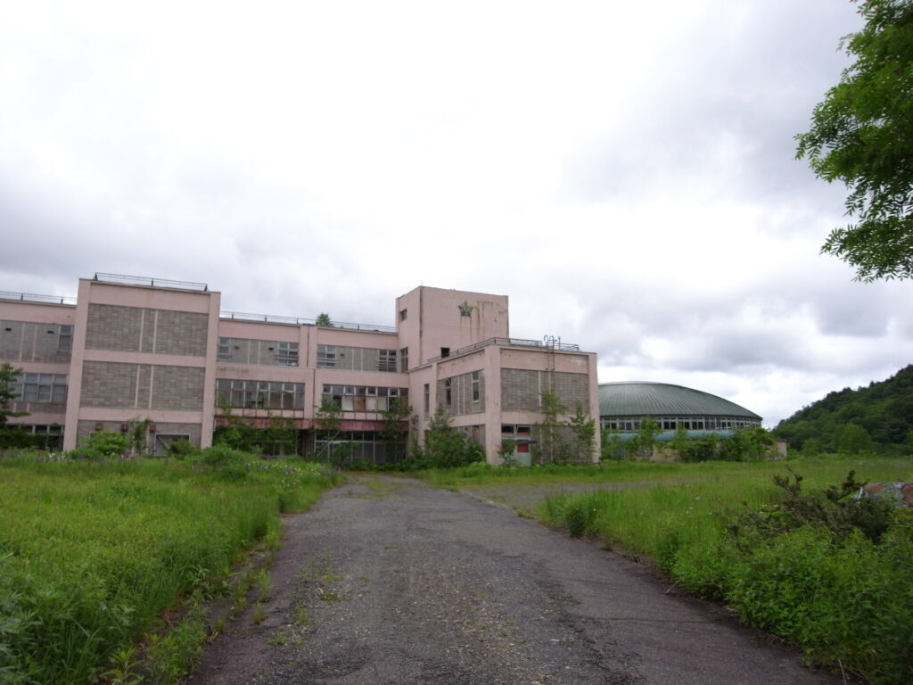 ▼築別炭坑跡近くの学校。山奥に以外に大きい学校でビックリ!もちろん廃校。