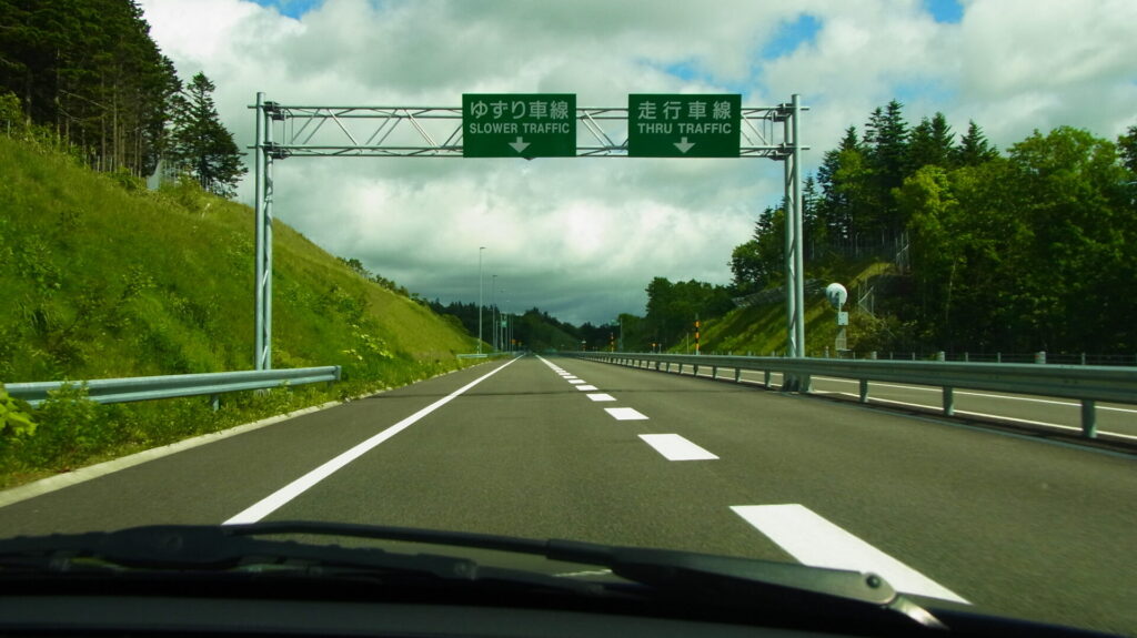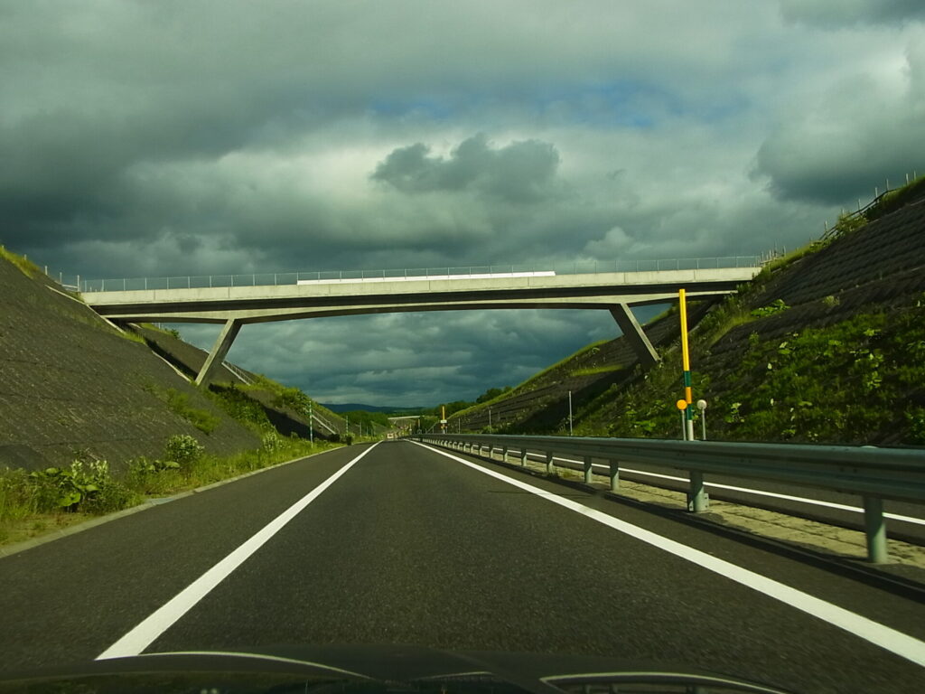 ▼高規格道路「豊富バイパス」 ゆずり車線走行中。譲る対象が無いが…