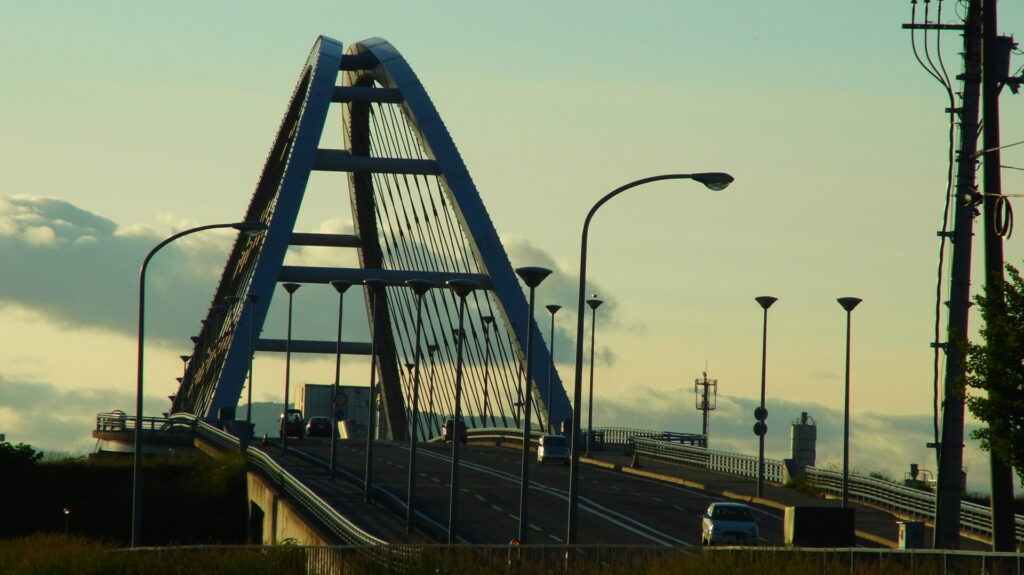 ▼ガソリンスタンドから見えた橋梁