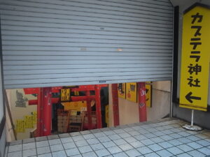 ▼「文明堂総本店」の並びに「カステラ神社」がある。まだ開いてない。