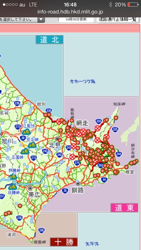 道東大荒れ!道路の通行止状況 2014 2/17 日常1 2014年2月17日2025年10月24日 ▼網走から中標津にかけて、通行できる幹線道路が無い(゜o゜) 20140217_191451 posted by (C)ミント専門官 日常1 なんと!VAIOにMac OSを搭載! 連日