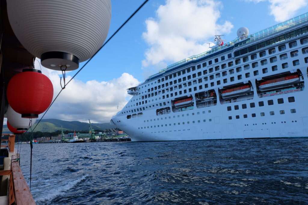 ▼ホテルノイシュロス小樽の付近の展望台から豪華客船