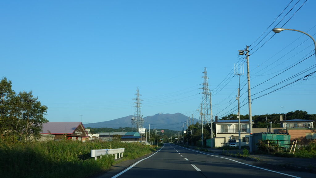 ▼セブンイレブンで日焼止めと飲料を買って、樽前山の陰に有る風不死岳を目指す。