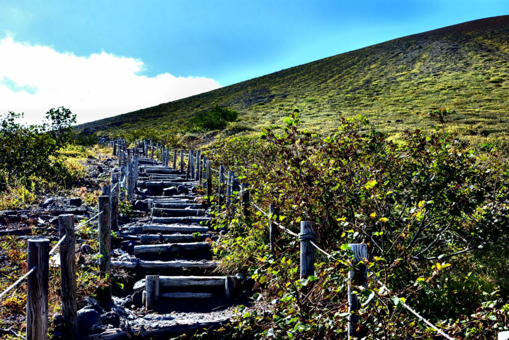 ▼帰ろうかと迷ったが、幼児も歩いているぐらいだから、5合目から7合目まで歩く。
