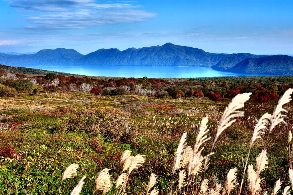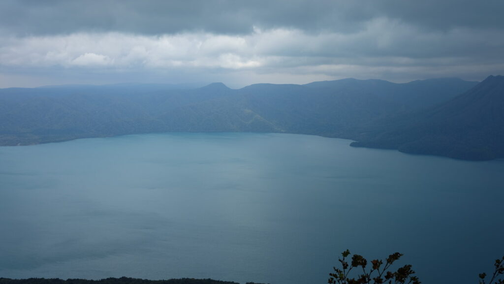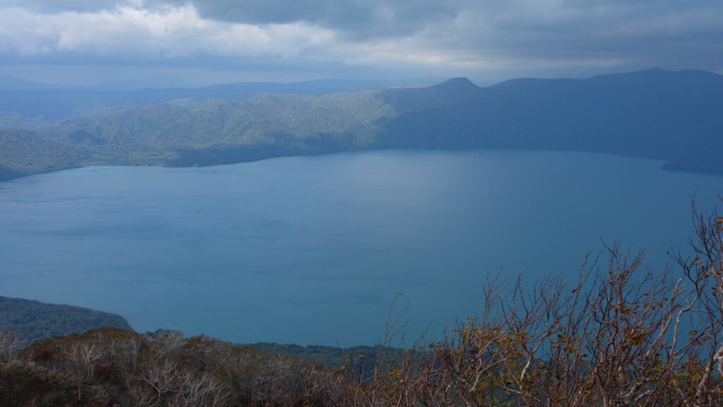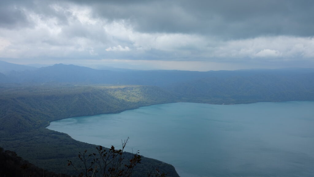 ▼四つ目のダミーピークより やっと見えた支笏湖全貌!樽前山からでは、ここが邪魔で見えない。