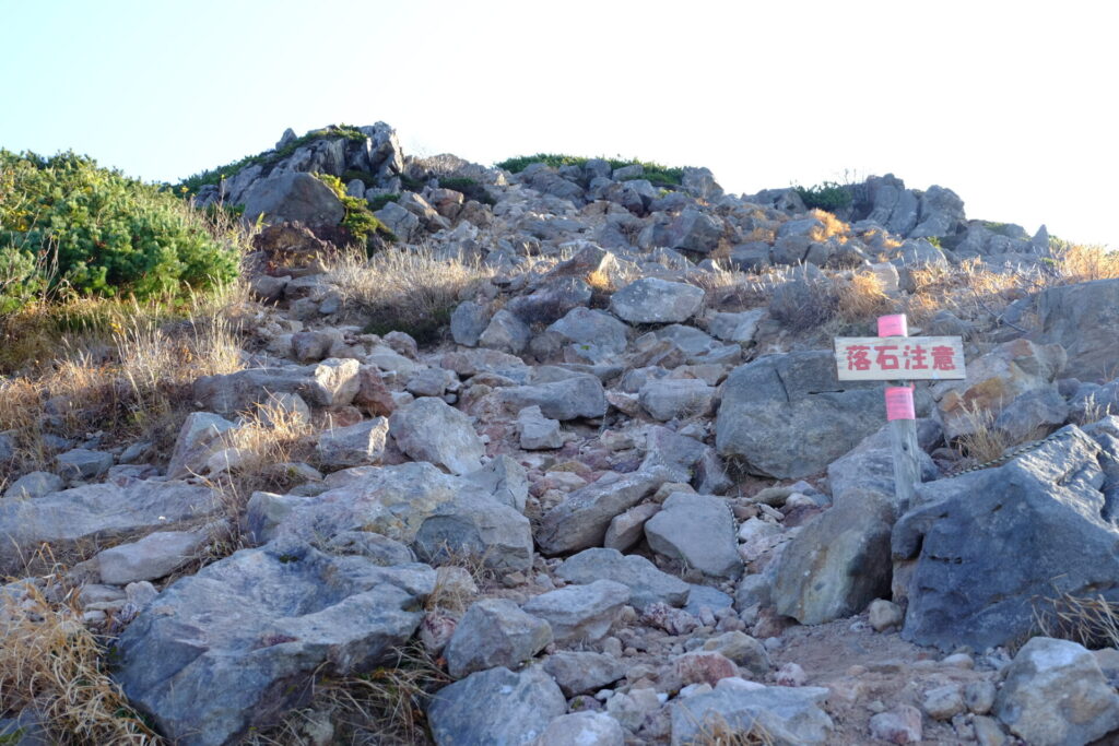 ▼戻って頂上を目指す。崩れてきて登りにくい。