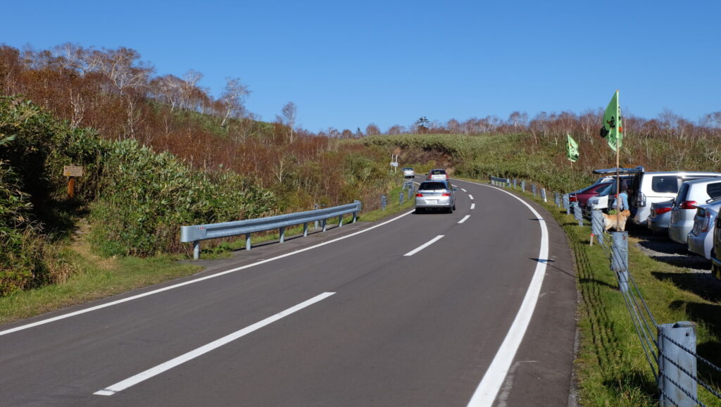 ▼大谷地の駐車所の道道を挟んで反対側に、「神仙沼」への散策路あり。