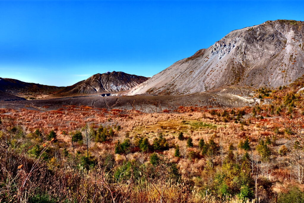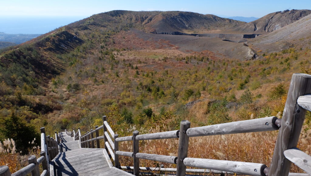 林道ゲート前駐車場-(40分)-噴火口展望台-(35分)-北展望台-(25分)-噴火口展望台-(15分)-南展望台-(40分)-林道ゲート前駐車場