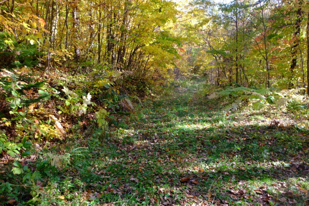 ▼上がってきた林道で戻る。そうしないと、車を駐車したところよりかなり下の方に下りてしまう。