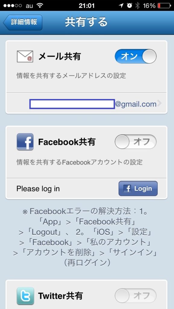 メール共有をオンにして、自分のメールアドレス(作業の容易なPCへ)を登録する。