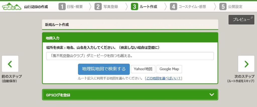 「やまれこ」を起動して、「3 ルートの作成」まで進む。