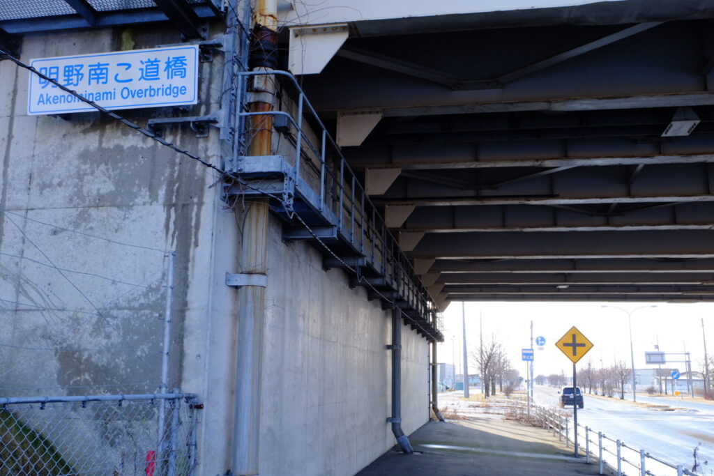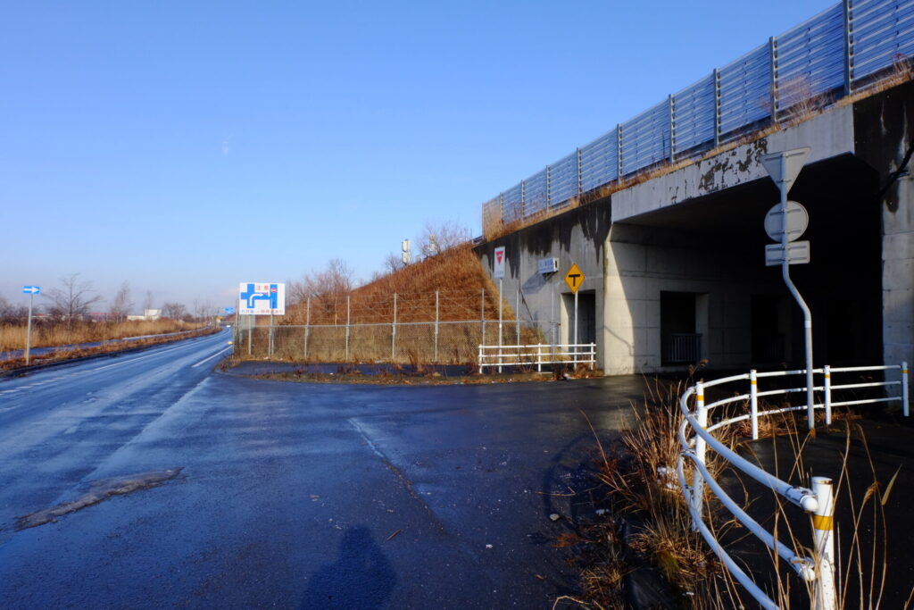 ▼明野南跨道橋をくぐって日高自動車道の西側へ