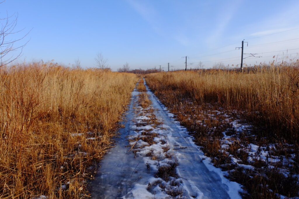 勇払原野の湿地散策「ウトナイ湖南西岸湿地」1/4~室蘭本線と美々川の交差部から開始~