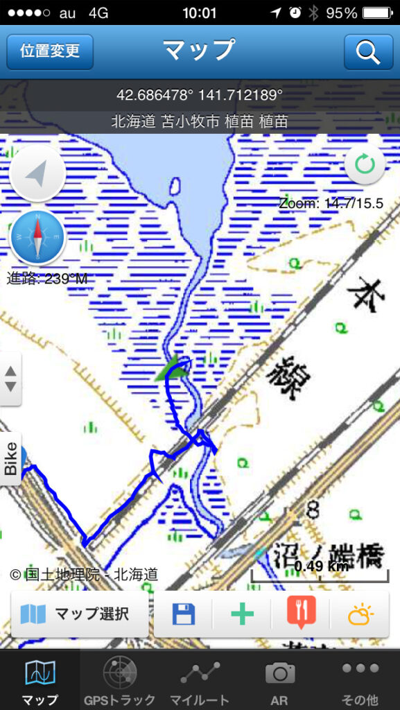 桁をくぐって南に進み、勇払川との合流点まで行こうとしたが湿地に阻まれ断念!
