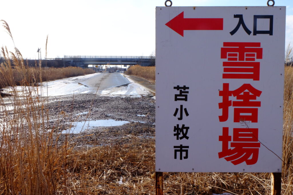 ▼雪捨場についた。真っすぐの通りが「明野南通」だ!