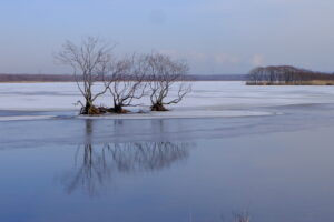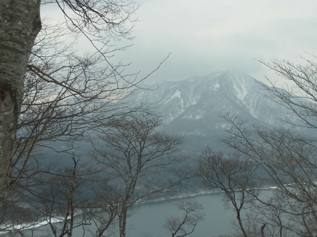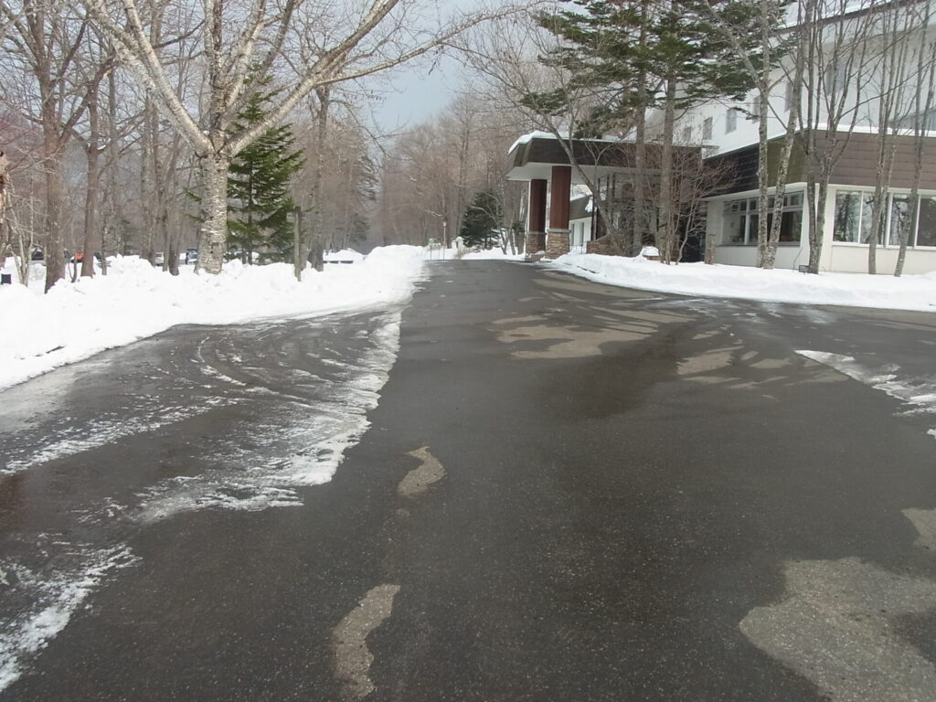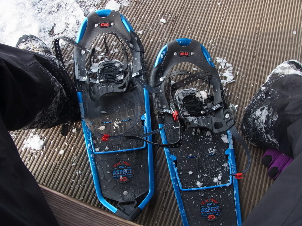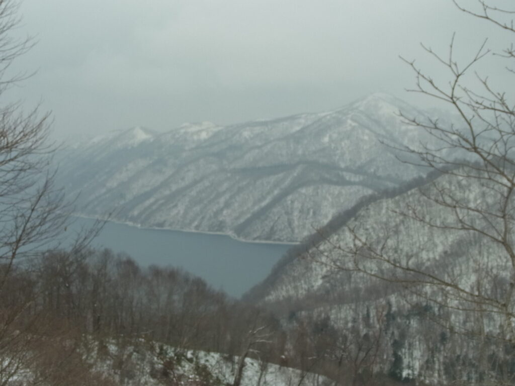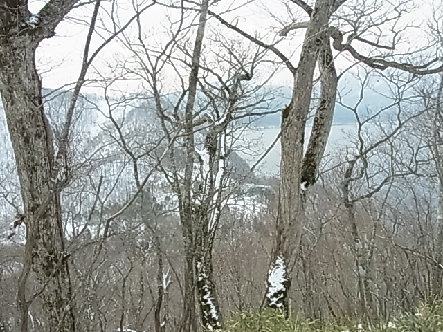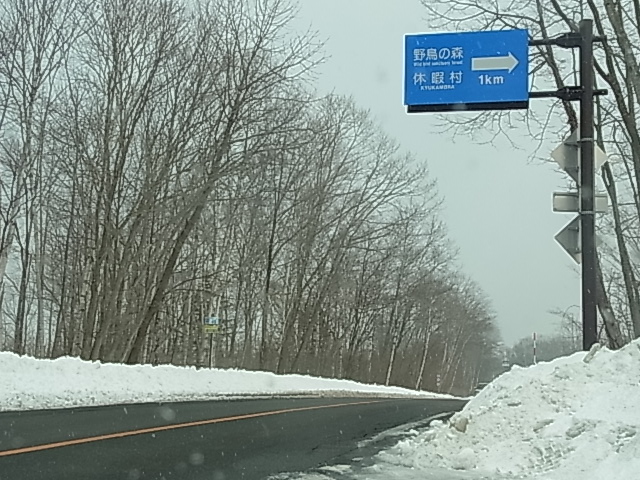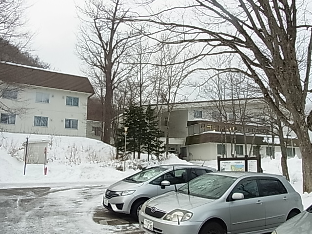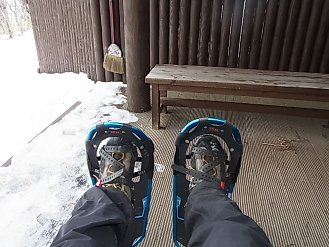 ▼休暇村支笏湖前の駐車場に停める。スノーシューを持って少し歩く。
