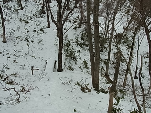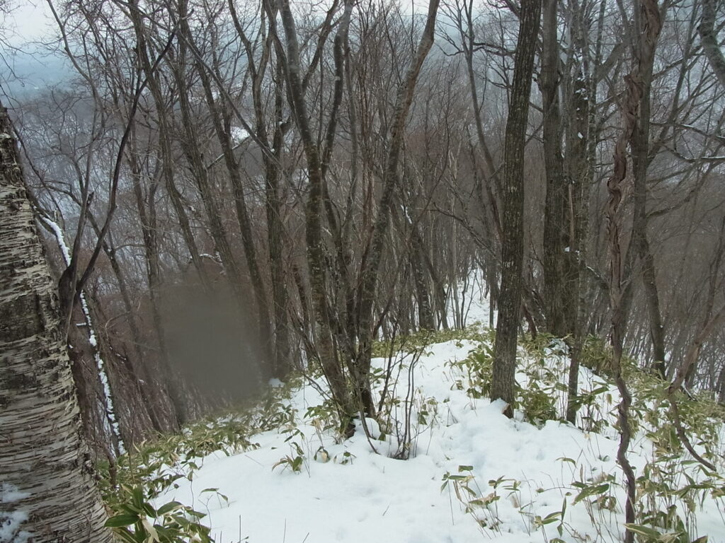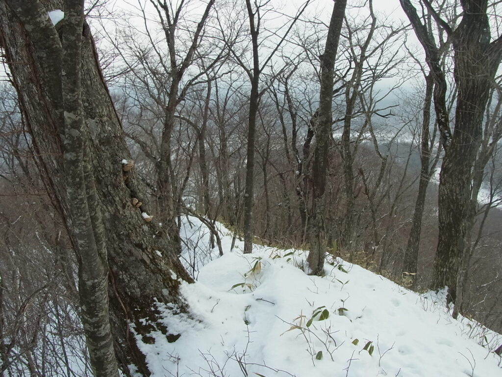 ▼南の斜面から登る人がいないのがわかる。急こう配!(最短距離だが)