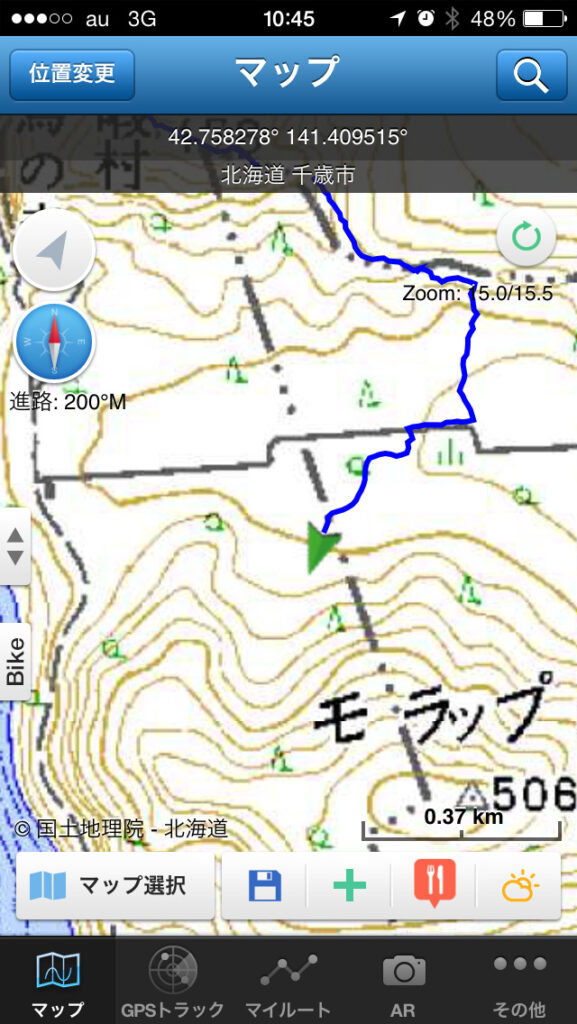 ▼50分も笹と格闘して、バテバテ(+o+) これからモラップ山を登る気力が無くなる。