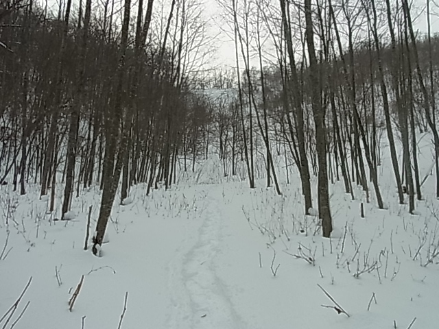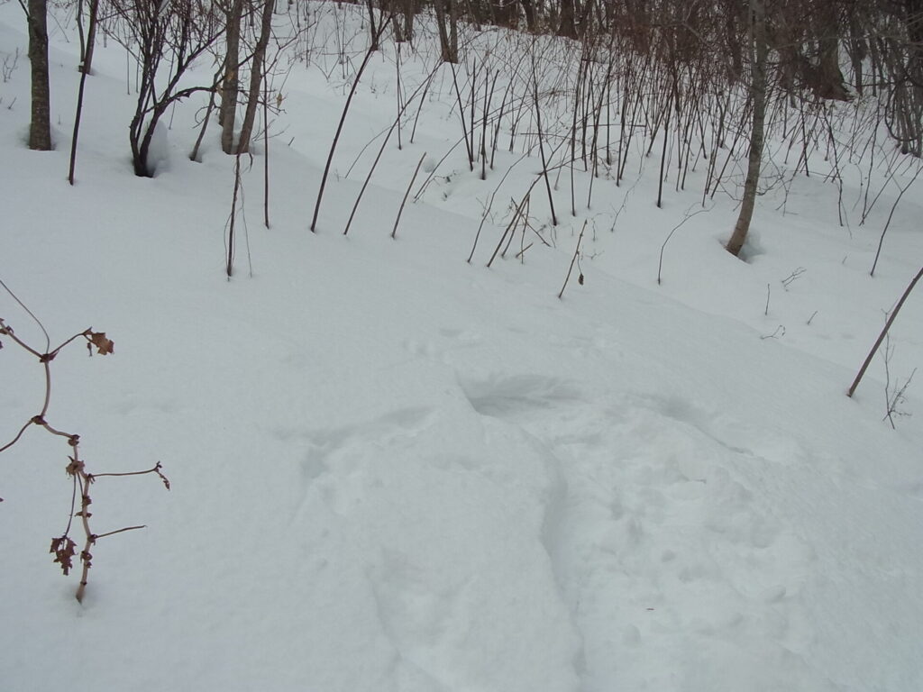 ▼先行者の足跡がある。旧スキー場のゲレンデの方に伸びているようだ。これは、トレースすれば緩斜面でモラップ山に行けそうじゃないか!(^^♪