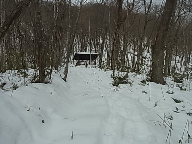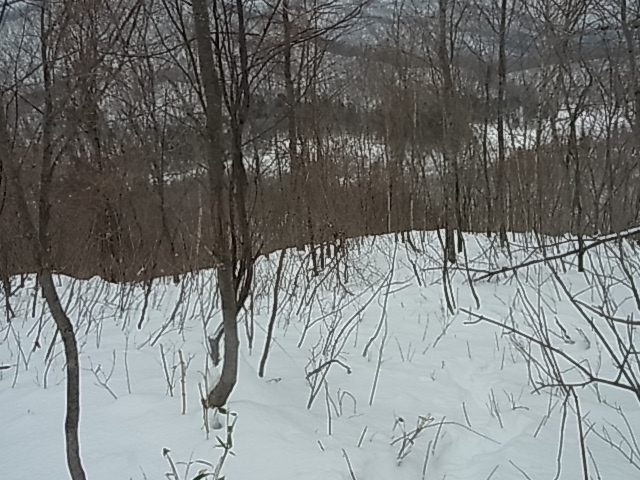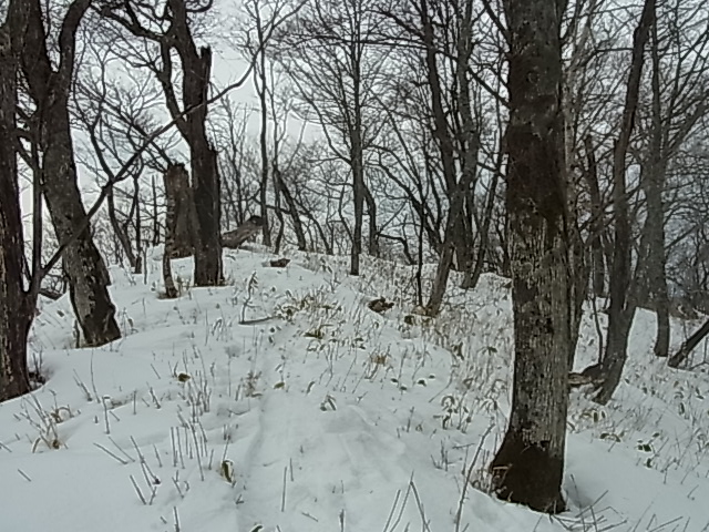 ▼このあたりが一番高いようだが、三角点も雪に埋もれてないな。